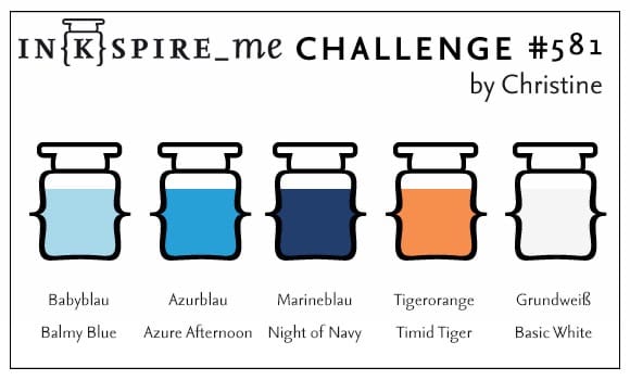 Die erste Challenge von Inkspire me im Jahr 2026… Wunderschöne Blautöne und als kleines Highlight die Farbe Tigerorange.